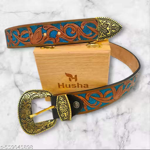 Add a touch of royalty to your wardrobe with this premium handcrafted leather belt. Featuring detailed floral embossing, a rich brown finish, and antique-style gold-toned buckle and tip, this belt is a perfect blend of tradition and style. Comes in a classy wooden box – ideal for gifting!