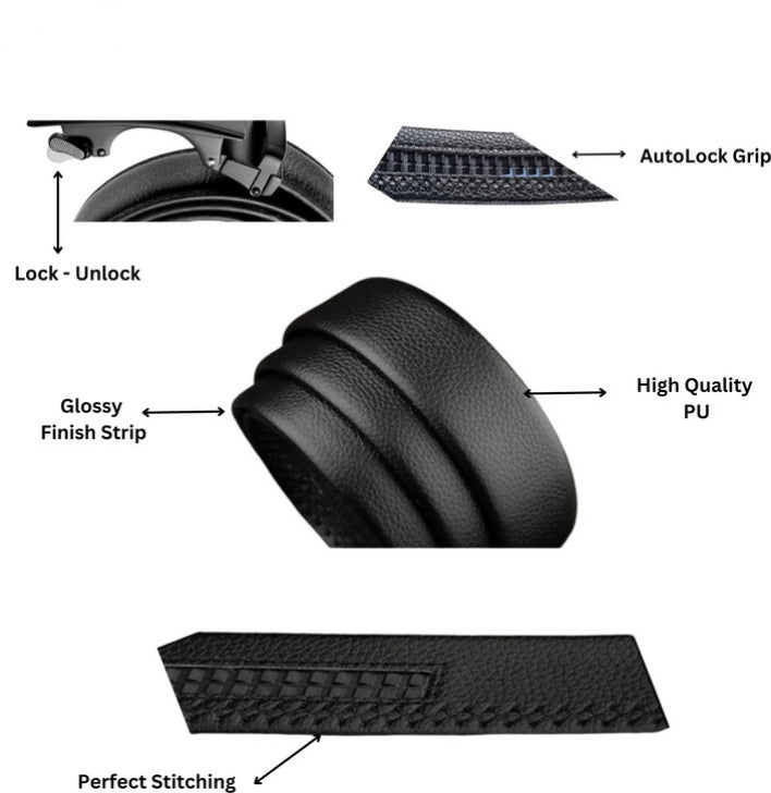 HUSHAHIDE Men's PU Leather Belt with Stylish Autolock Adjustable Buckle – Black, 48 Inches
